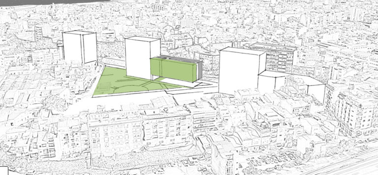 Las fachadas principales se plantearon como un espejo, quedando reflejadas en ellas la tipología de lo que había enfrente. En el lado calle el policromatismo de las fachadas y su tamaño más bien estrecho, marcó su composición. En la fachada que daba al parque se realizó con paneles de madera.