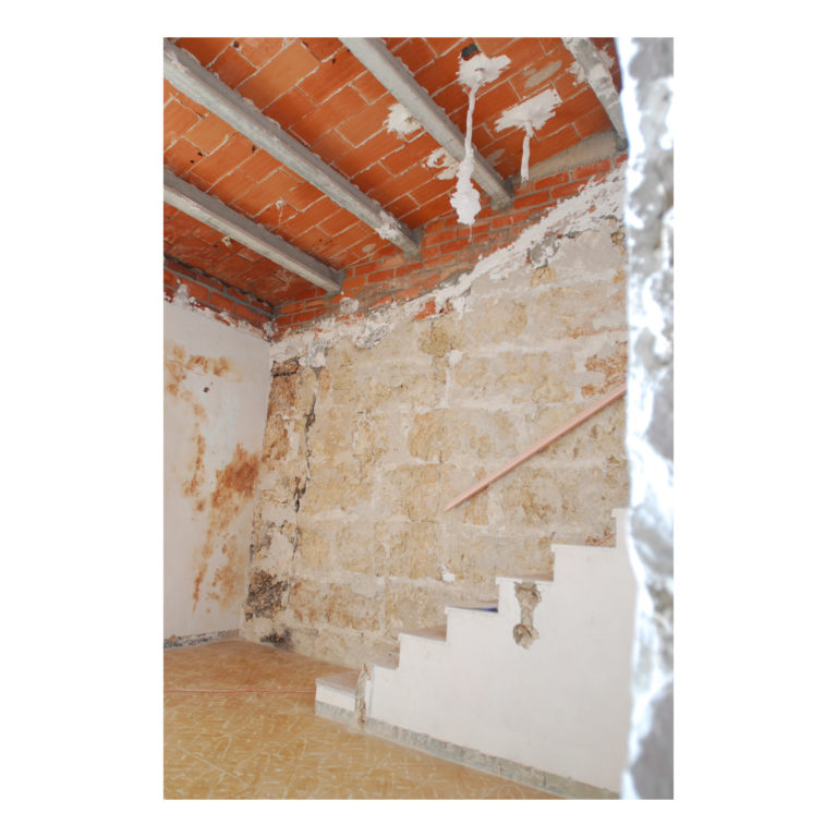 1_La casa, entre medianeras, está en Bañolas, una ciudad pequeña a 100 km de Barcelona, en medio de un entorno natural privilegiado: entre una llanura verde y un lago natural. Aunque estaba habitada, la casa era un laberinto de espacios inhabitables, paredes mohosas y techos quebrados. Visiblemente, el trabajo principal, con un presupuesto muy ajustado, sería recomponer los espacios, hacer llegar la luz natural al interior, y recuperar la materialidad escondida.