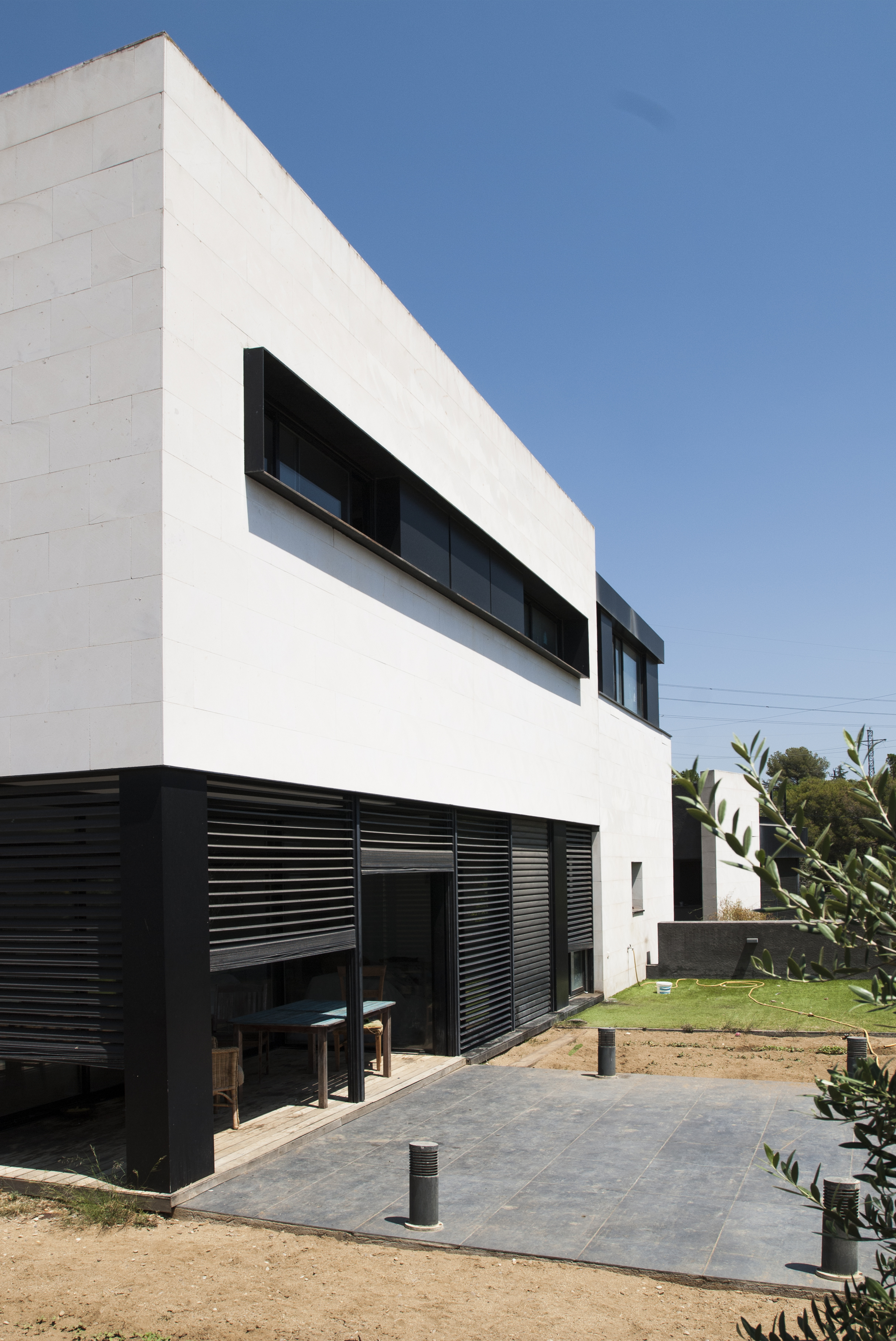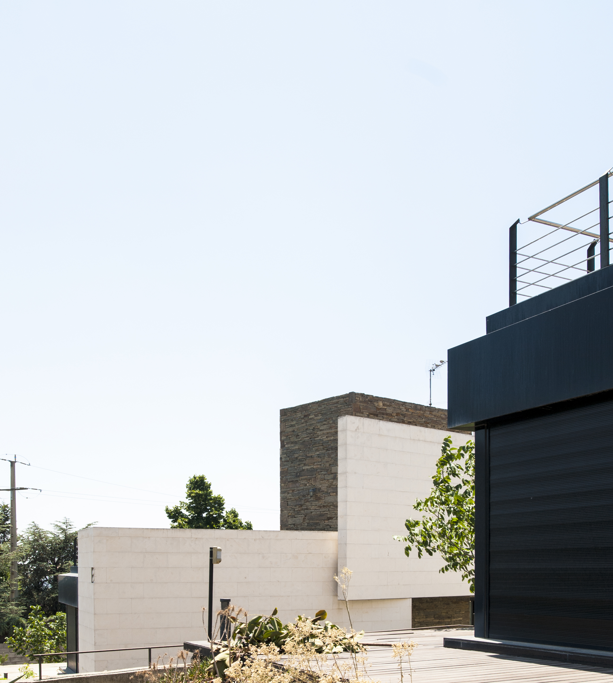 Es un proyecto en el que la naturaleza irrumpe con fuerza y rompe la caja minimalista. Teníamos un solar grande que daba a dos calles, una a un nivel 3m por debajo de la otra.