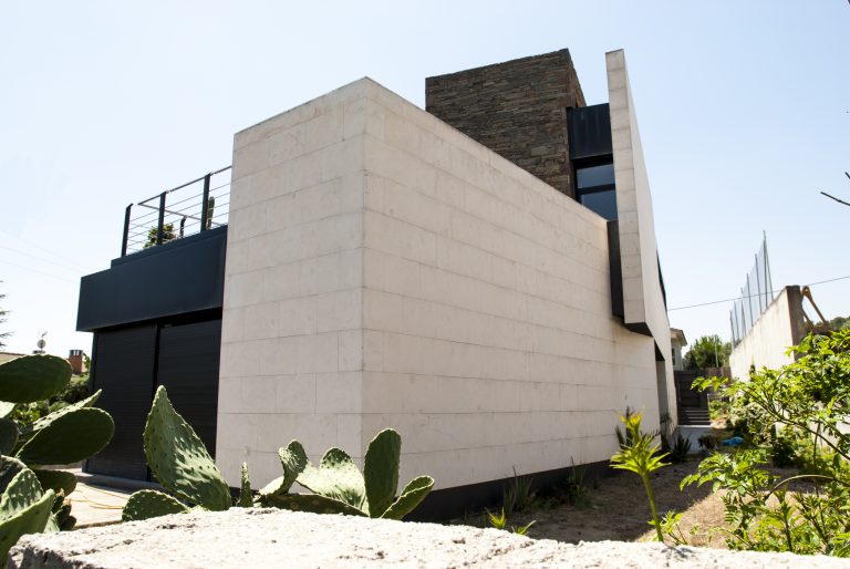 Aprovechamos la piedra que sacamos de la excavación para hacer la caja de escalera. Fue en este ejercicio en el que se rompió la caja minimalista donde se creó el proyecto singular de esta casa.